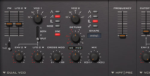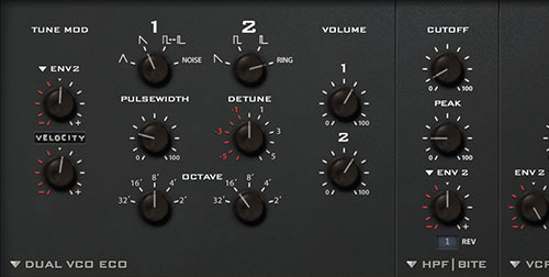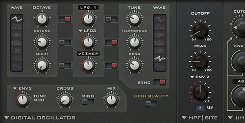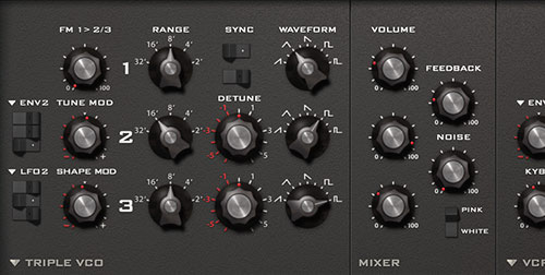 5 oscillator models based on classic synth hardware: Triple VCO, Dual VCO, VCO, Dual VCO Eco, Digital