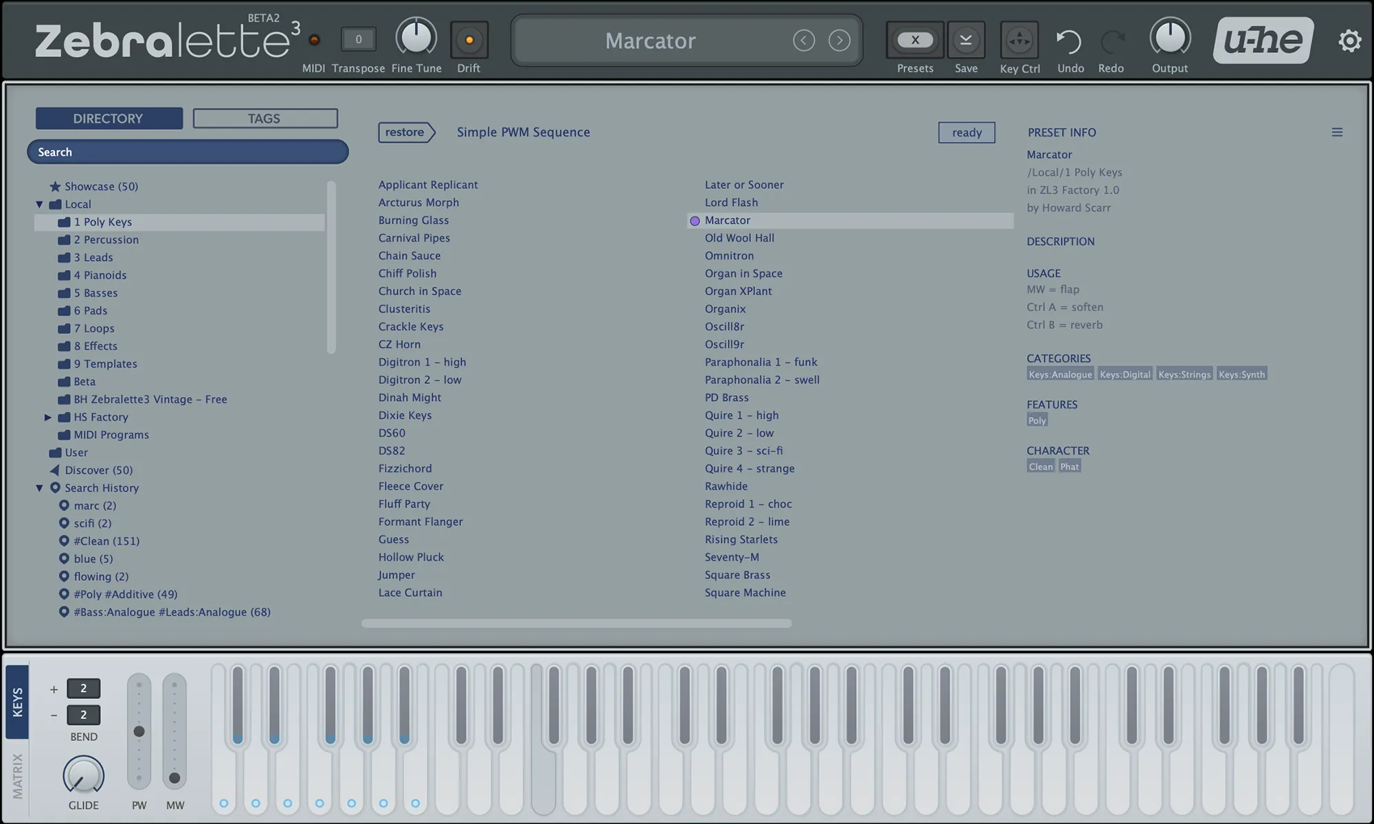 Zebralette 3 is a single oscillator plucked from the mothership and embedded within a minimal synth environment: ADSR envelope, MSEG, two LFOs, mod matrix, delay and reverb effects. Like its predecessor, Zebralette 3 is freeware.